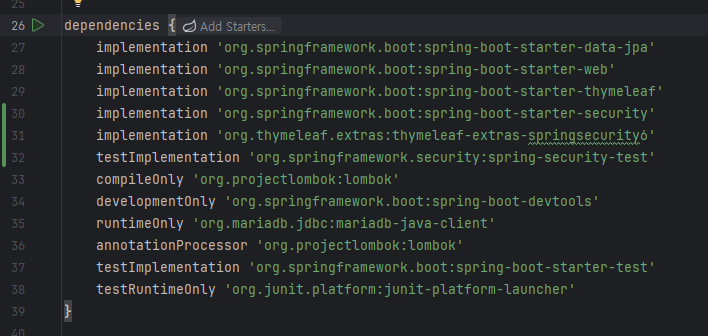 implementation 'org.springframework.boot:spring-boot-starter-security'