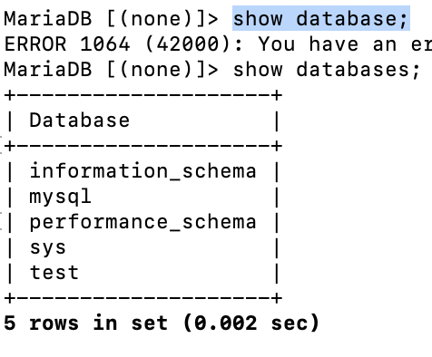 5. ๋ฐ์ดํฐ๋ฒ ์ด์ค ๋ชฉ๋ก ํ์ธ